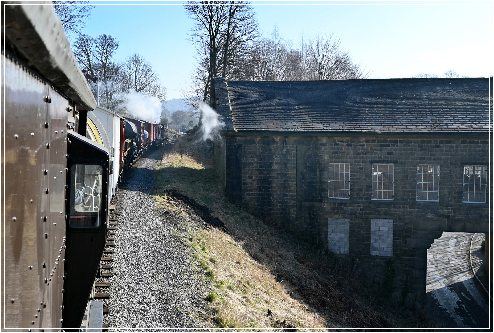 We rode the train up to Oxenhope, then bailed off back at Haworth for a few lineside pics. The 8F races through the woods.